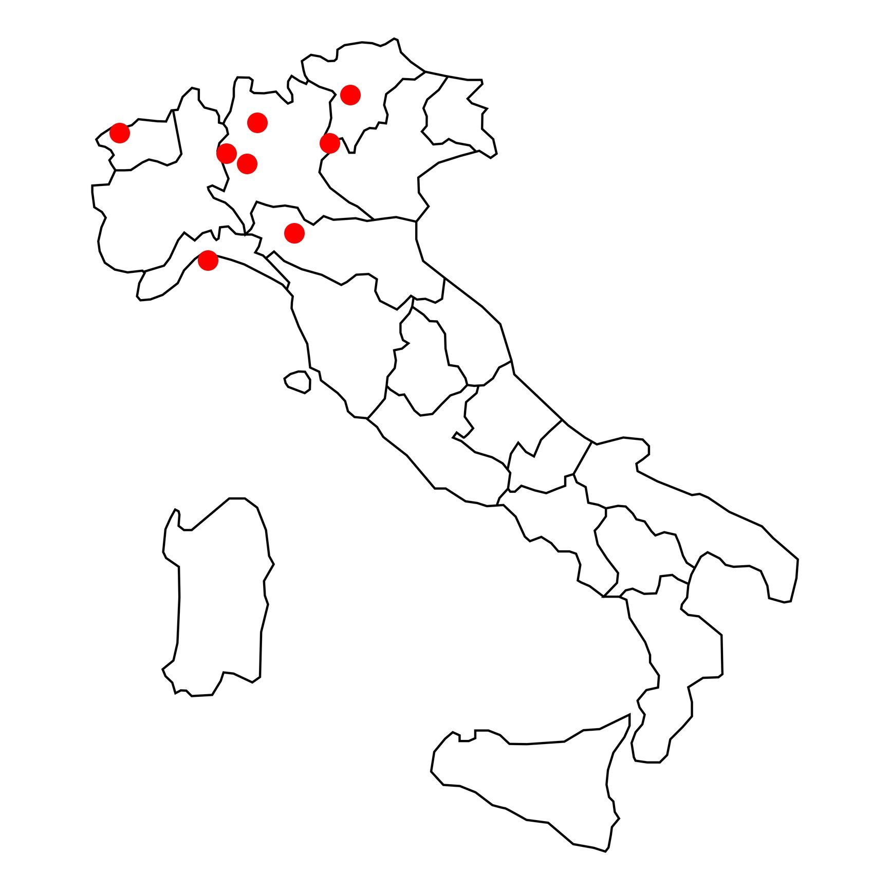 Verbania, Novara, Biella, Vercelli, Varese, Monza e Brianza, Milano, Como e Lecco.